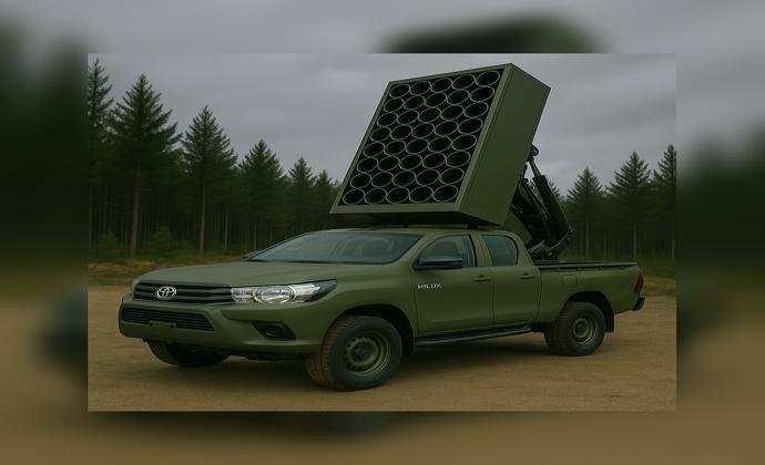 Vehicle integration— a compact launcher/mission rack designed to mount in the Hilux pickup bed with vibration-isolated electronics, power management, and a hardened comms link to the vehicle’s operator console.